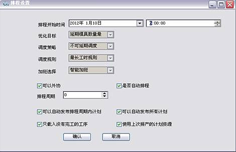系统提供排程策略设置功能,对业务排程模型进行设置。 资源定义:主资源及替代资源、机动设备、资源优先级策略。 工序的接续方式:根据工序间的关系提供ES、EES、ESE、SSE等多种接续方式满足各种工艺路线的要求。 资源分派规则:任务优先级、外协规则、移动时间、排程目标、有限能力排程、无限能力排程等排程规则设置满足不同业务规则的排程要求。