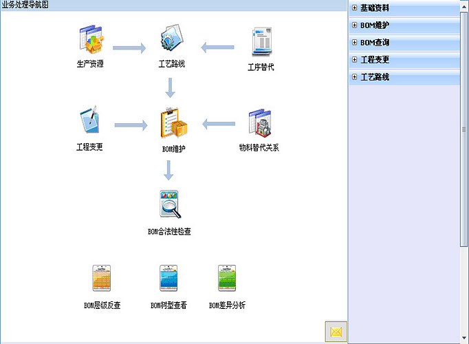 生产数据管理系统,面向制造企业的研发、工程、设计人员设计,提供物料清单(BOM)维护、、工艺路线维护、物料替代关系等基础产品数据管理功能,以及BOM单级查询、BOM多级查询、BOM单级反查、BOM多级反查、BOM合法性检查、BOM树型查询、BOM差异分析等生产数据综合管理功能,帮助制造企业规范生产数据的基础管理减少错误。该系统与供应链系统、生产任务管理系统结合使用,提供一体化的生产管理解决方案。