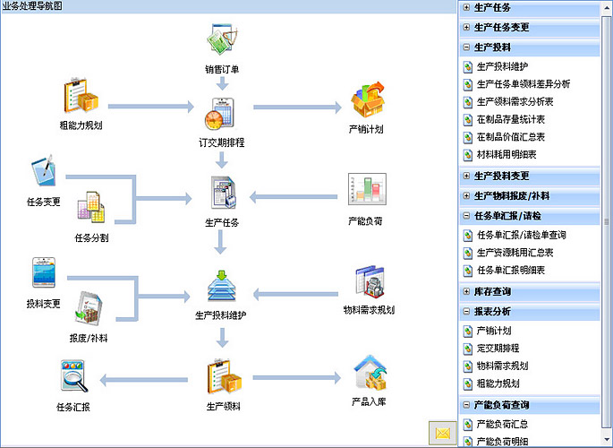生产任务管理系统,面向制造业的生产管理人员设计,提供生产任务管理、生产任务变更、生产任务分解、生产任务分割、生产投料、生产投料变更、生产领发料、生产物料报废、生产任务汇报、在制品管理、生产返工、完工缴库等生产业务流程管理,并提供生产进度管控、生产用料管制、物料替代等综合管理功能。帮助企业对制令投产、能力负荷、生产用料备料、领发料管制、生产任务汇报及完工缴库等生产过程的物流、信息流及生产资源进行有效的管理和控制。需与供应链系统、生产数据管理系统结合使用,提供一体化的生产管理解决方案。