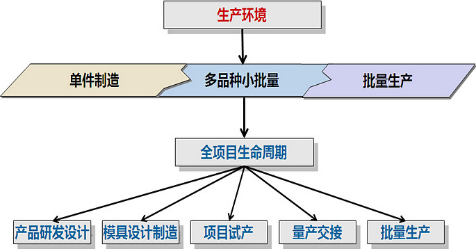 新增加的生产数据管理和生产任务管理模块,是给属于项目型制造又有批量生产的企业使用的,这样普方O2精益项目制造管理系统适应范围更广,如下模式: