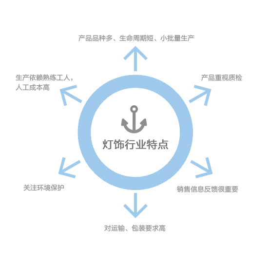 行业是制造业中的一个新兴行业,随着我国人民生活水平和审美水平的提高,政府扩大基建规模拉动内需及西部大开发等一系列政策的出台,再加上出口业务的拉动灯饰行业取得了前所末有的发展。企业业务量越来越多和经营实力越来越强。由于企业规模和实力的增强企业由单一生产型转向生产经营型,企业的管理也有粗放型转向集约型。企业迫切需要对各种资源进行有效整。