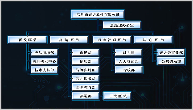 普方总部位于深圳软件园,下辖普方智慧技术有限公司(工业4.0研发),秉承“企业互联网+管理创新”的愿景,逐渐形成了SaaS云ERP、云制造、行业云应用三大业务并驾齐驱的经营格局,全面渗透国内市场。已为200个细分行业的2000余家客户提供全生命周期的企业管理服务和个性化行业解决方案。